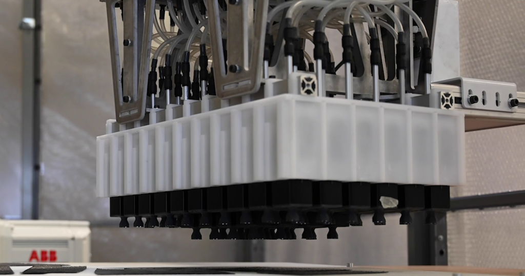 Solution conçue pour la réalisation automatique de stacks (2 plis par minute). Cette solution inclus le gripper universel (SMART Gripper) et le SMART Control.